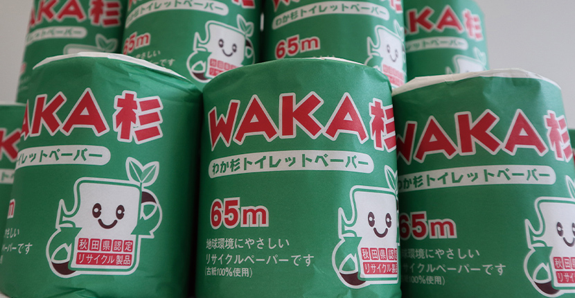 秋田県内の古紙をリサイクルし、個包装された当社オリジナル製品です。